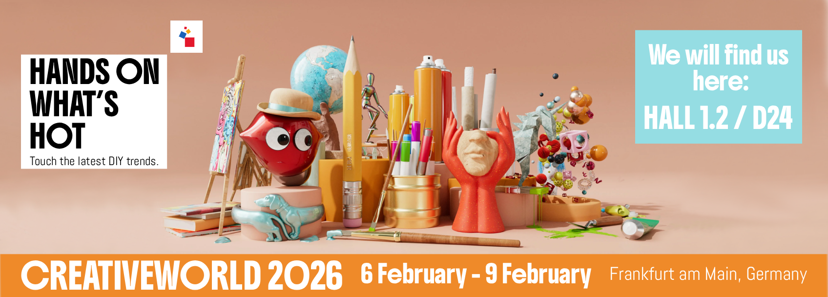 Siamo lieti di annunciare che anche quest'anno saremo tra i protagonisti di Creativeworld, la fiera internazionale di riferimento per il mondo dell'hobbistica, delle belle arti e della creatività professionale.